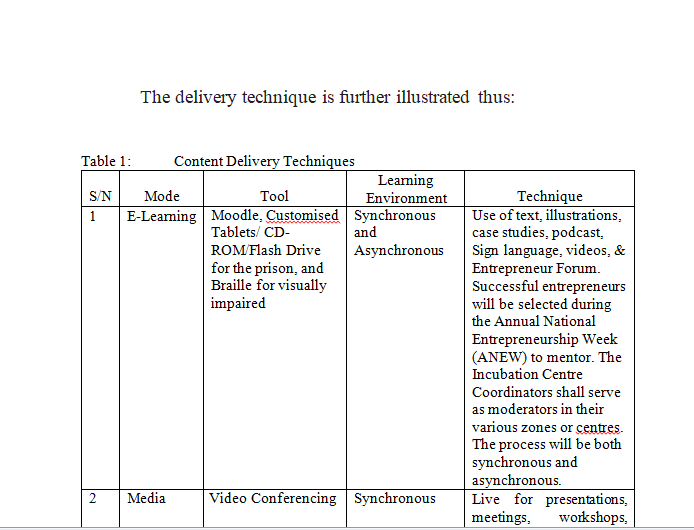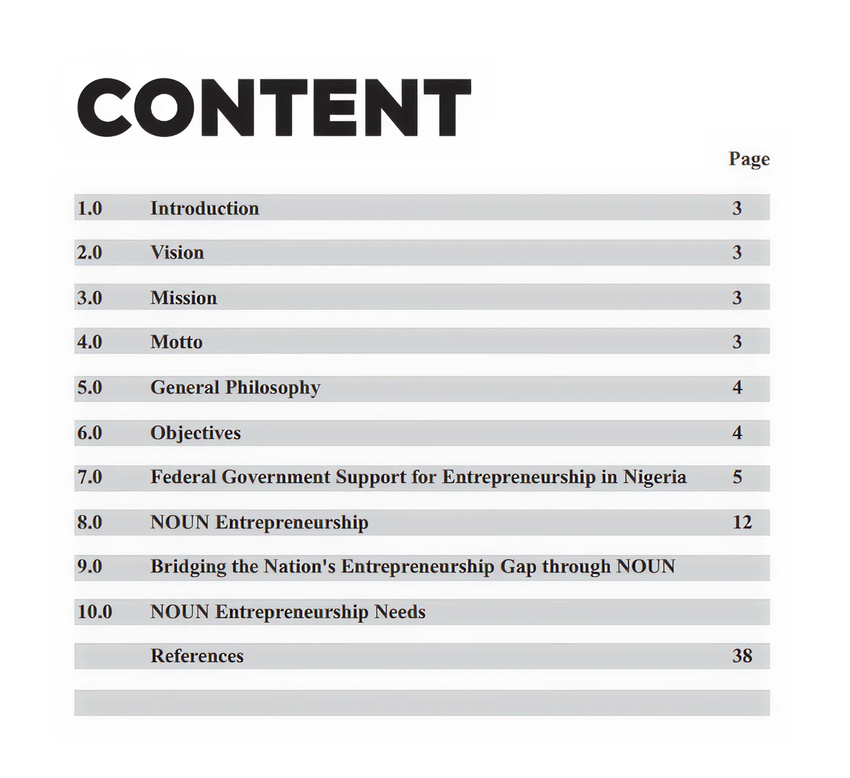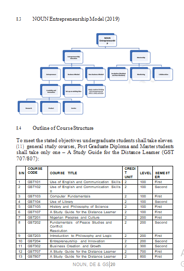 National Open University of Nigeria (NOUN) through its Directorate for Entrepreneurship and General Studies (DE&GS) shall fill the national entrepreneurship gap through the following: