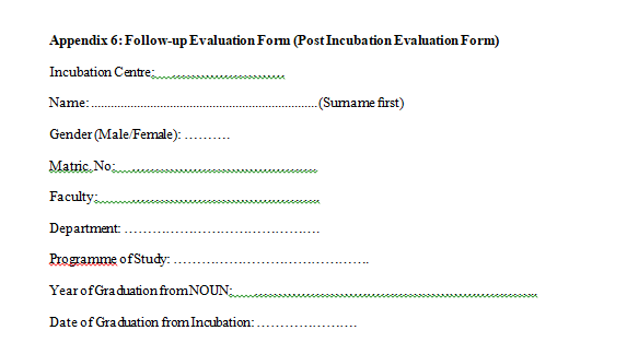 The Post-Incubation period last for one year. Where the Coordinators of each Incubation Centres follow-up the graduate progress to ascertain stability before final release.