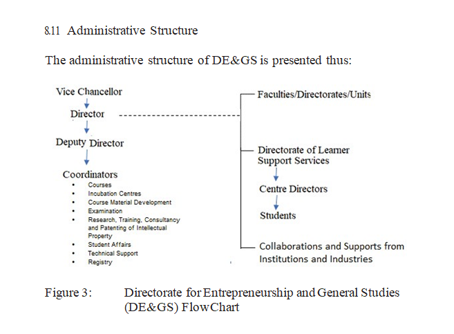 The Directorate for Entrepreneurship and General Studies (DE&GS) was established on the 11th May 2017 as Centre for Entrepreneurship and General Studies (CE&GS). Based on the activities of the Centre the nomenclature was changed by the University Management from Centre for Entrepreneurship and General Studies to Directorate for Entrepreneurship and General Studies (DE&GS) on 21st May 2019.