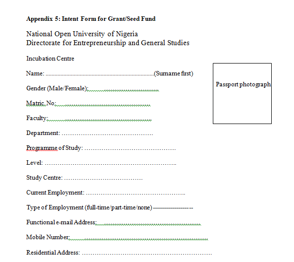 . NOUN needs monetary support which shall be grant or take off seed from Federal Government and Central Bank of Nigeria (CBN) to aid start-ups. Students with innovative ideas are to be supported with this fund. We suggest that as student wins the grant, the cash shall not be released to the student. An account which will be controlled by CBN shall be opened for this purpose and disbursement shall be made based on the approved work plan and achievement of the NOUN and Federal government/CBN shall agree on the Performance Indicators.
